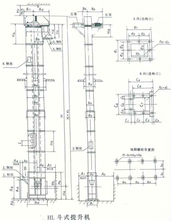 我公司生產的HL 型環鏈離心斗式提升機,由運動部分(料斗與牽引鏈條)、帶有傳動鏈輪的上部區段、帶有拉緊輪的下部區段、中間機殼、驅動裝置、逆止制動裝置等組成(見下 圖)。本提升機的料斗為間斷式布置,利用“掏取法”進行裝載,“離心投料法”卸料。本提升機的牽引機構是兩根環形鏈條.我公司生產的HL型環鏈離心斗式提升機,由運動部分(料斗與牽引鏈條)、帶有傳動鏈輪的上部區段、帶有拉緊輪的下部區段、中間機殼、驅動裝置、逆止制動裝置等組成(見下圖)。本提升機的料 斗為間斷式布置,利用“掏取法”進行裝載,“離心投料法”卸料。本提升機的牽引機構是兩根環形鏈條。