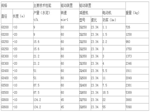 GX管式螺旋輸送機(jī)選型技術(shù)參數(shù):